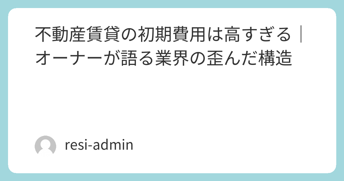 レジデンスエトセトラ:不動産賃貸の初期費用は高すぎる|オーナーが語る業界の歪んだ構造